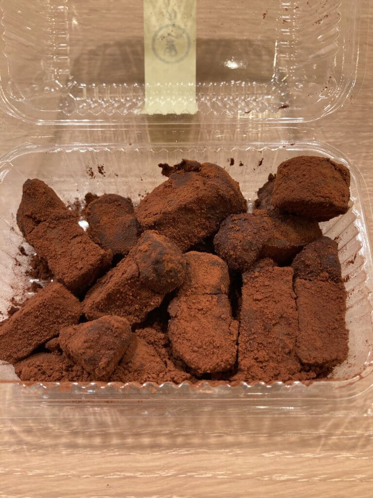 よく見てください。上が生チョコ、下がわらび餅の二層になっているんです。