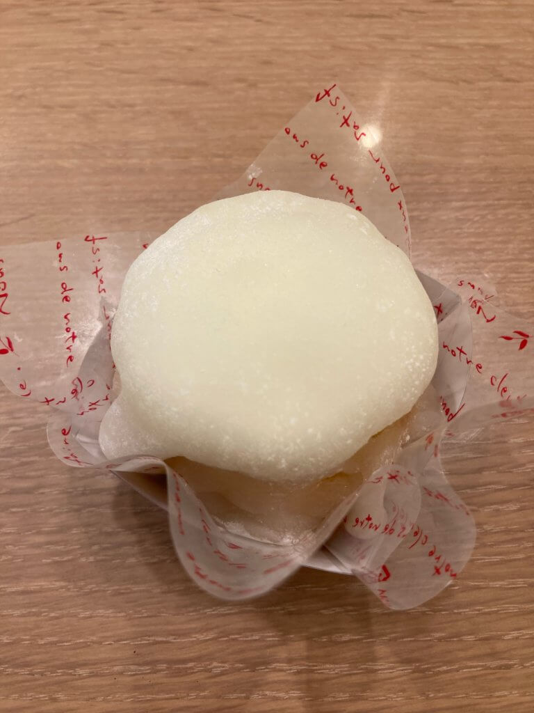 丸ごとの桃、生クリーム、スポンジ、そして外側の求肥のバランスがいい感じです。