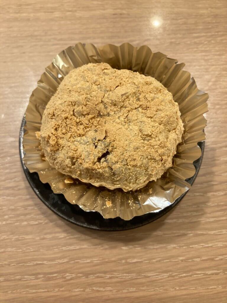 ゴトー饅頭店の「きな粉のおはぎ」は注文してからきな粉をまぶすスタイルで昔からの看板メニューです。