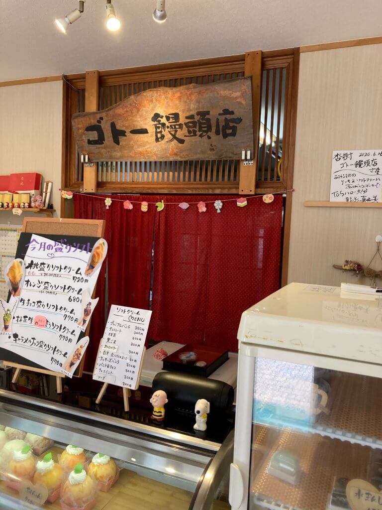 杏樹 ゴトー饅頭店には様々なソフトクリームがあります。