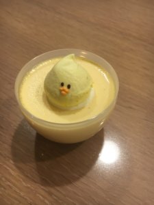 写真のプリンはこっこプリンという商品です。ヒヨコかわいいですよね。娘がとてもよろこびます。
