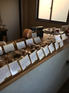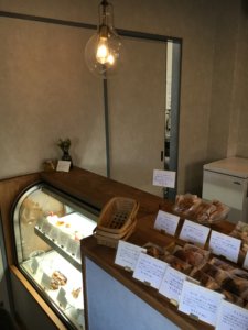 コンパクトなショーケースもの中にはこれまたオシャレなケースが並んでいます。焼き菓子もたくさんあります。