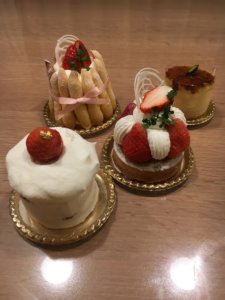 左前「シャンデル」、右前が「フルーツタルト」、左後が「フレジェ」右後が「サンマルクトゥージュール」