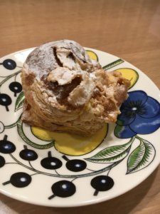 洋梨とキャラメルをサンマルクにアレンジした・・・ということです。キャラメリゼされているため香ばしくておいしいです。上のムースの部分はキャラメルのくどさを洋梨でまとめている感じです。でもやっぱりかなり甘いです。←三回目