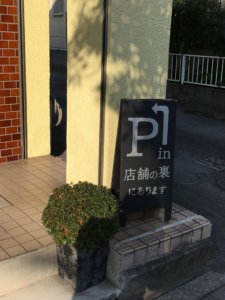 このドアに向かって右側からお店の裏に行けます。駐車場はここです。
