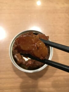 本来、煮込むことで美味しくなるパイカを「K&K 缶つまホルモン 豚軟骨 直火焼き」では炭火焼して缶詰にしています。どんな味か楽しみです。