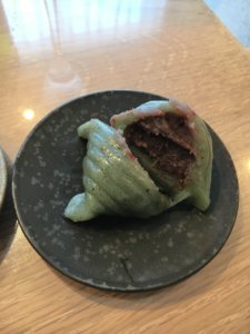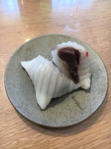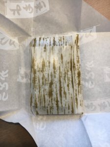 「うるち米」の餅ですが、もちもちしています。あんこの甘さも丁度良く美味しいです。また形も四角なので、みなさんが良く食べたことのある「あんこ餅」とは少し違います。面白い餅です。