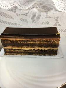 フランス発祥のケーキである。 グラン・マルニエまたはコアントローのシロップをしみ込ませたビスキュイ・ジョコンドという生地に、ガナッシュ、コーヒーのバタークリーム、もしくはモカシロップで層を作り、チョコレートで覆った物を言う。引用Wikipedia
