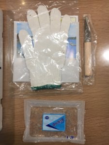 同梱されている軍手とかき用ナイフを使ってカキを開けるのですが、これが初心者には難しいんですよね。