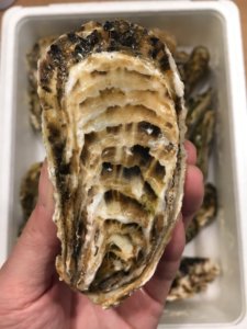 牡蠣の綺麗さに驚きました。イソメなんて一匹もいません。さすが無菌牡蠣です。